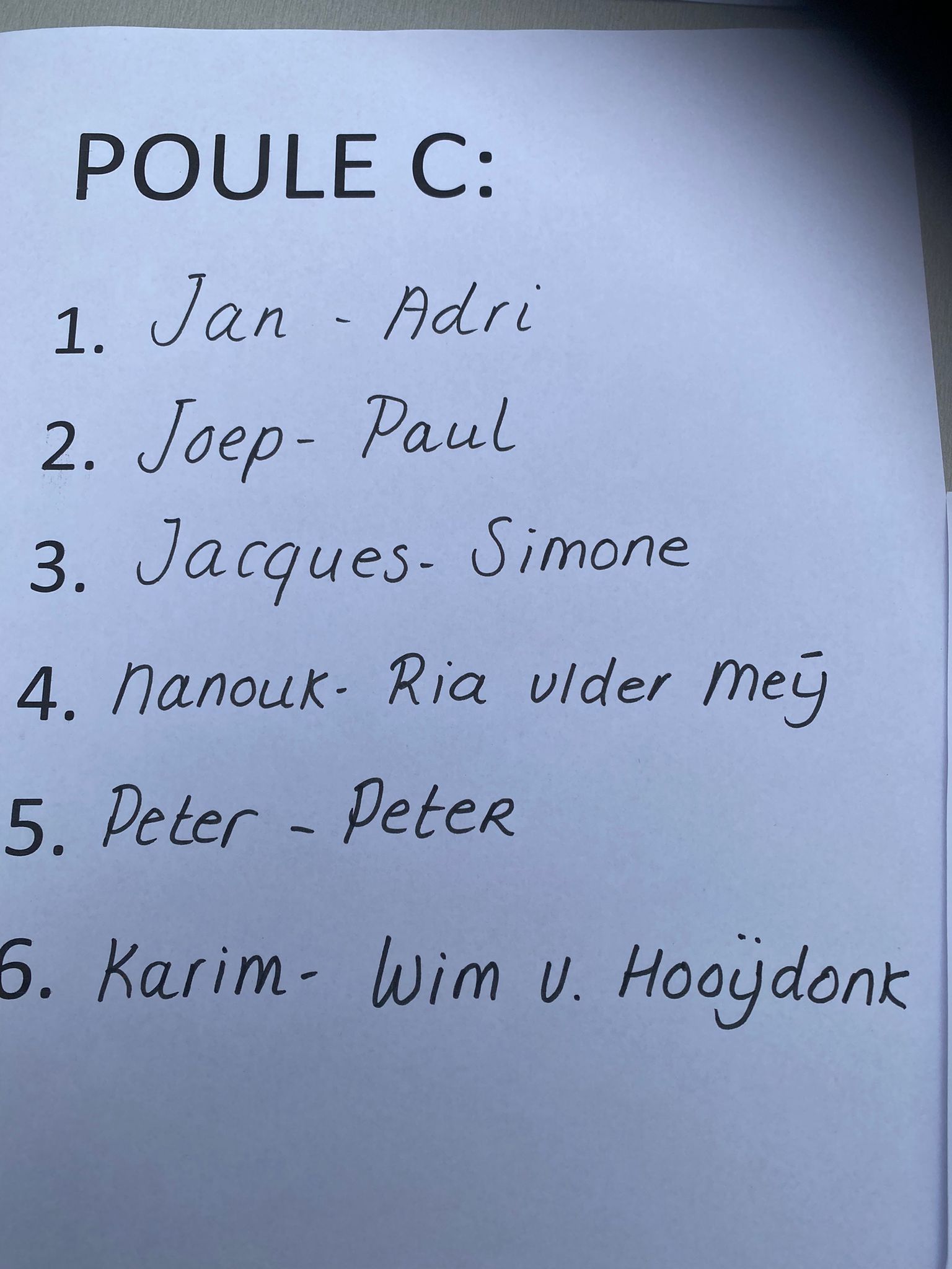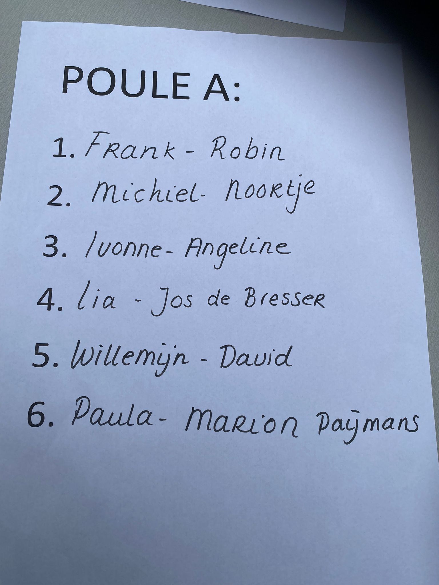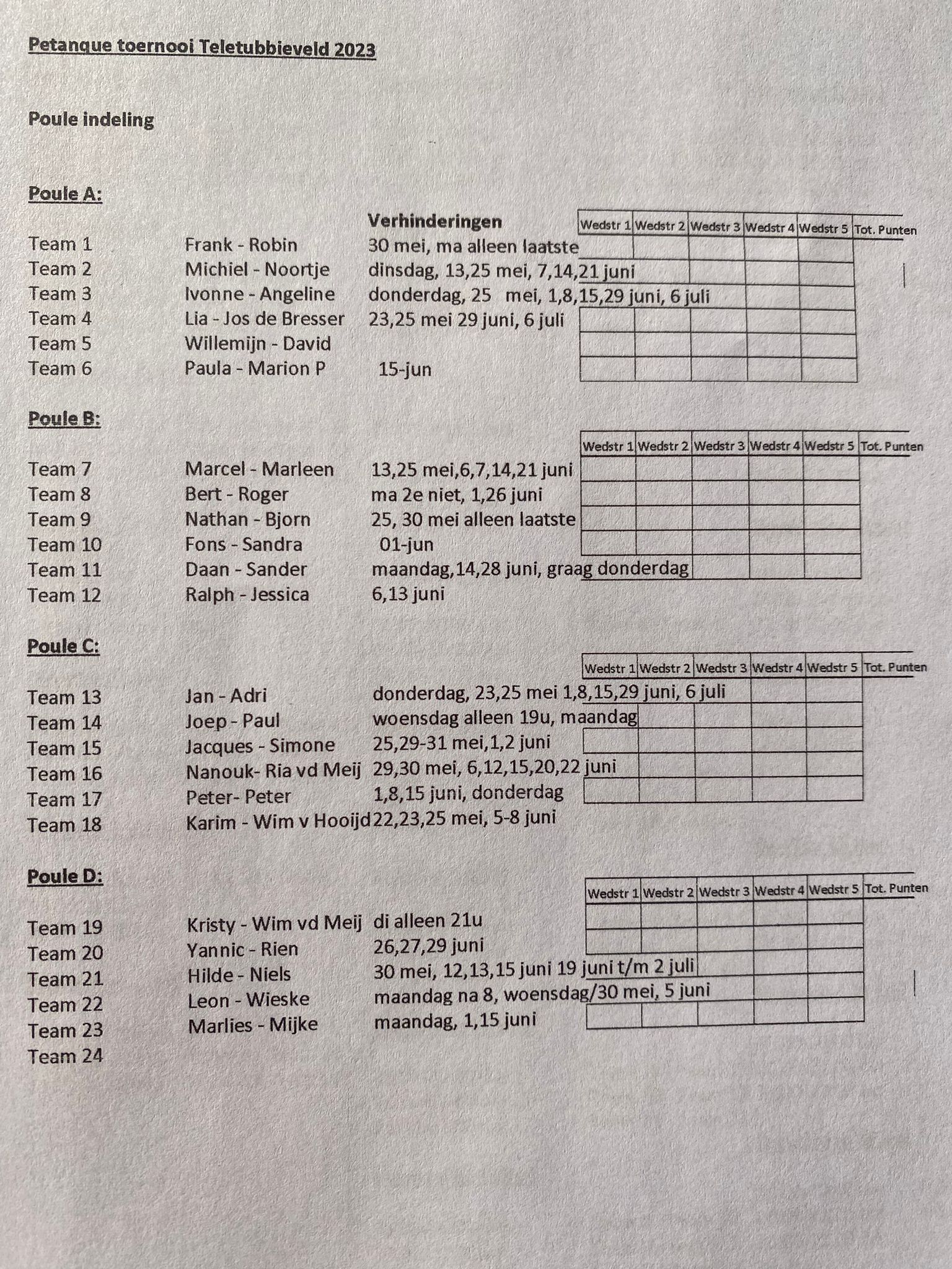 Team, Poule, Schema